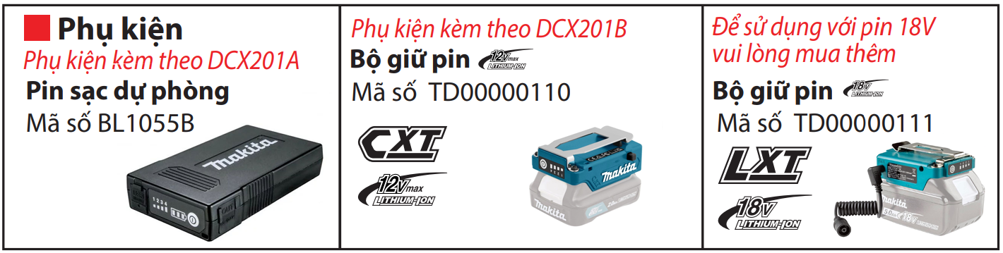 Phụ kiện kèm theo DCX201B(XS~XL): bộ giữ pin TD00000110