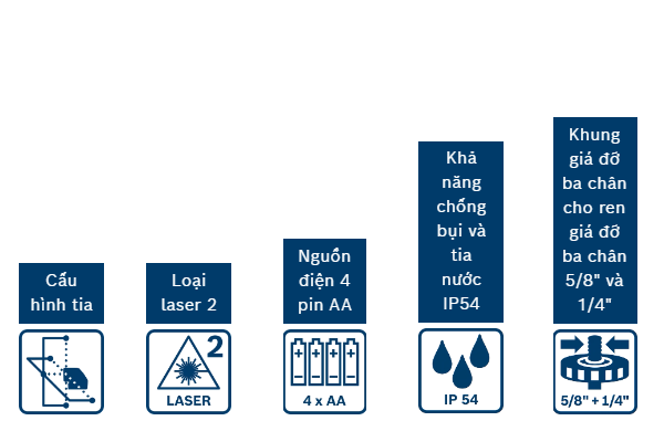 | Phạm vi làm việc của các điểm laze, tối đa | 10 m (phía trên), 5 m (phía dưới), 30 m chiều ngang |
