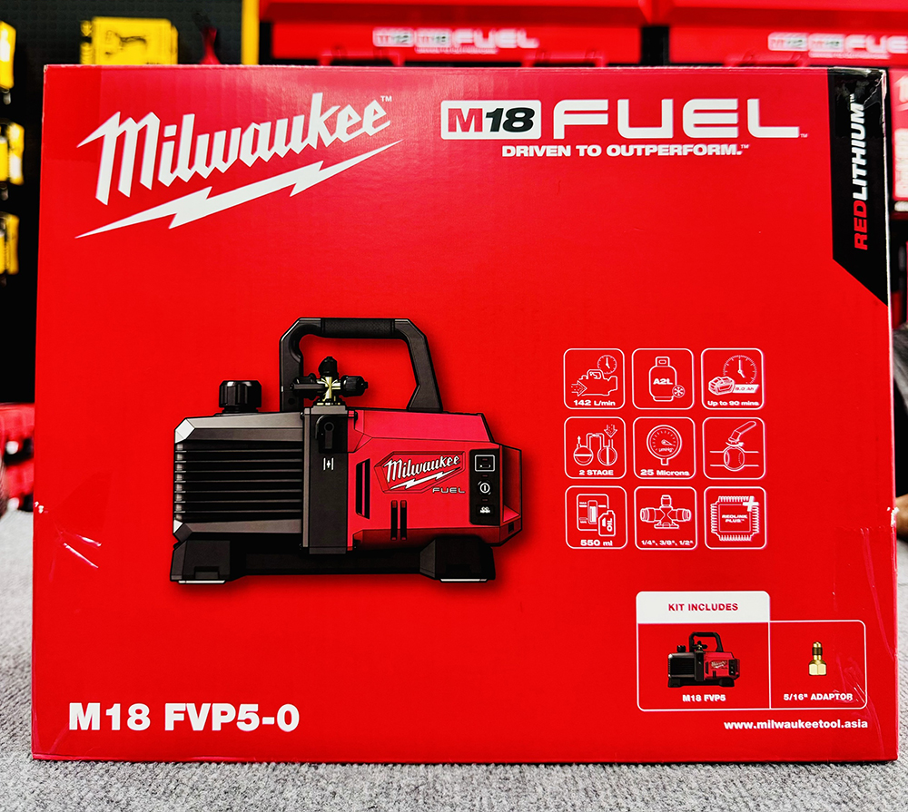 Máy hút chân không dùng pin 18V Milwaukee M18 FVP5-0 dùng để lọc không khí trong quá trình lắp đặt máy lạnh ; nó loại bỏ tất cả không khí từ ống chất làm lạnh để tạo ra môi trường chân không trước khi ống được nạp khí làm lạnh. Sản phẩm này được cung cấp bởi pin Milwaukee 18V Red.