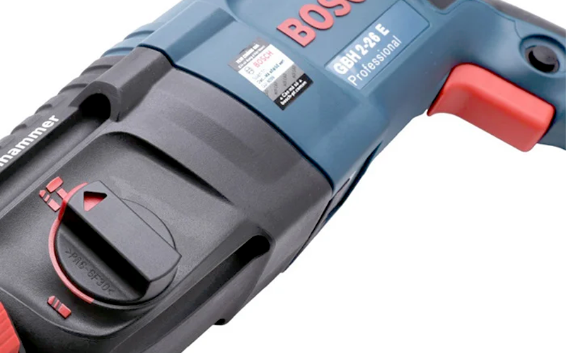 Máy khoan Bosch GBH 2-26 E có tính năng khoan búa, giúp cho việc khoan bê tông trở nên hiệu quả hơn. Chế độ này còn được điều chỉnh với 2 mức độ khác nhau để phù hợp với từng loại vật liệu và công việc cụ thể.