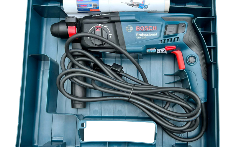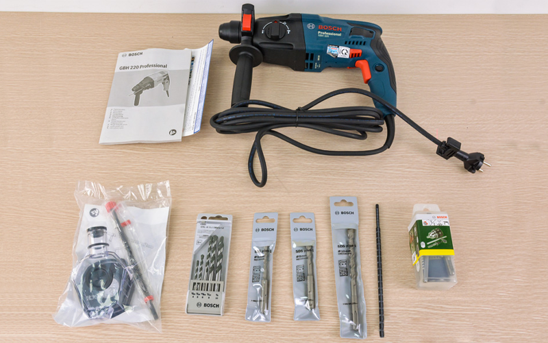 Máy khoan búa kiểu xoay GBH 220 Professional của Bosch với công nghệ SDS plus là giải pháp nhỏ gọn lý tưởng cơ bản cho khoan búa. Mô-tơ 720W mạnh mẽ và năng lượng va đập 2.0J để khoan búa hiệu quả trong bê tông có đường kính lên đến 22mm. Đảm bảo tính đa năng và cho kết quả thuyết phục của máy khoan búa kiểu xoay ba chế độ cho khoan búa, khoan và đục. Máy khoan búa kiểu xoay nhỏ gọn trong tầm tay này cho hiệu suất khoan búa chuyên nghiệp của Bosch.