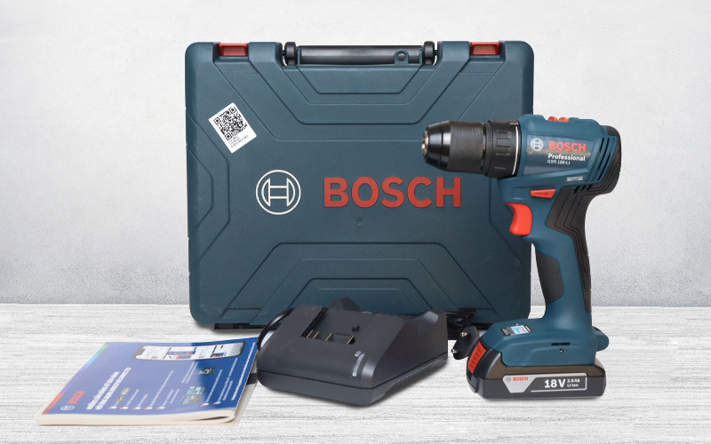 Máy khoan dùng pin 18v Bosch GSR 185-LI đi kèm với một số phụ kiện cơ bản như pin, sạc và hộp đựng. Ngoài ra, bạn cũng có thể mua thêm các phụ kiện khác như mũi khoan, đầu vặn vít và bộ chuyển đổi để tăng tính đa dụng của máy.